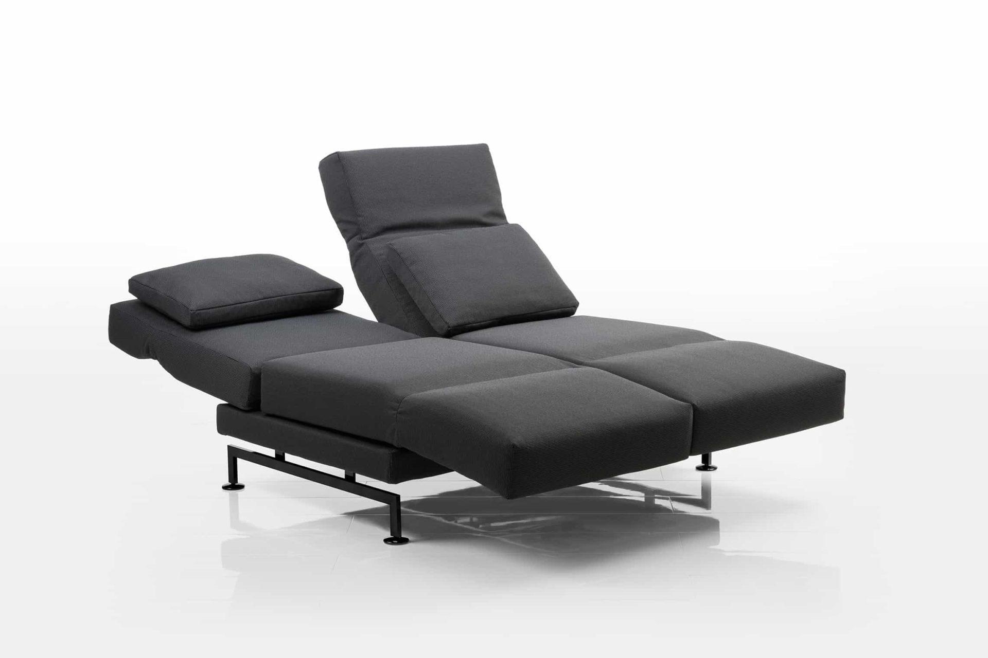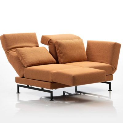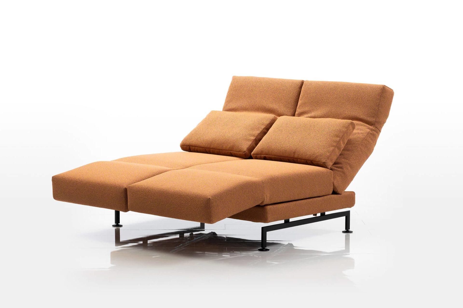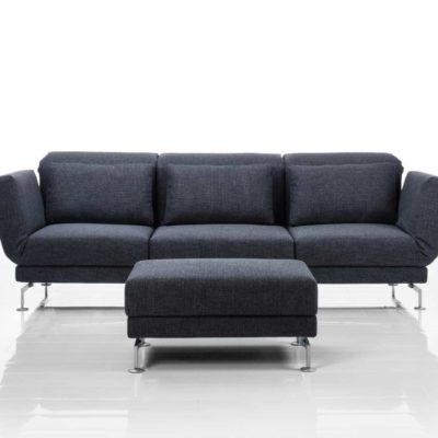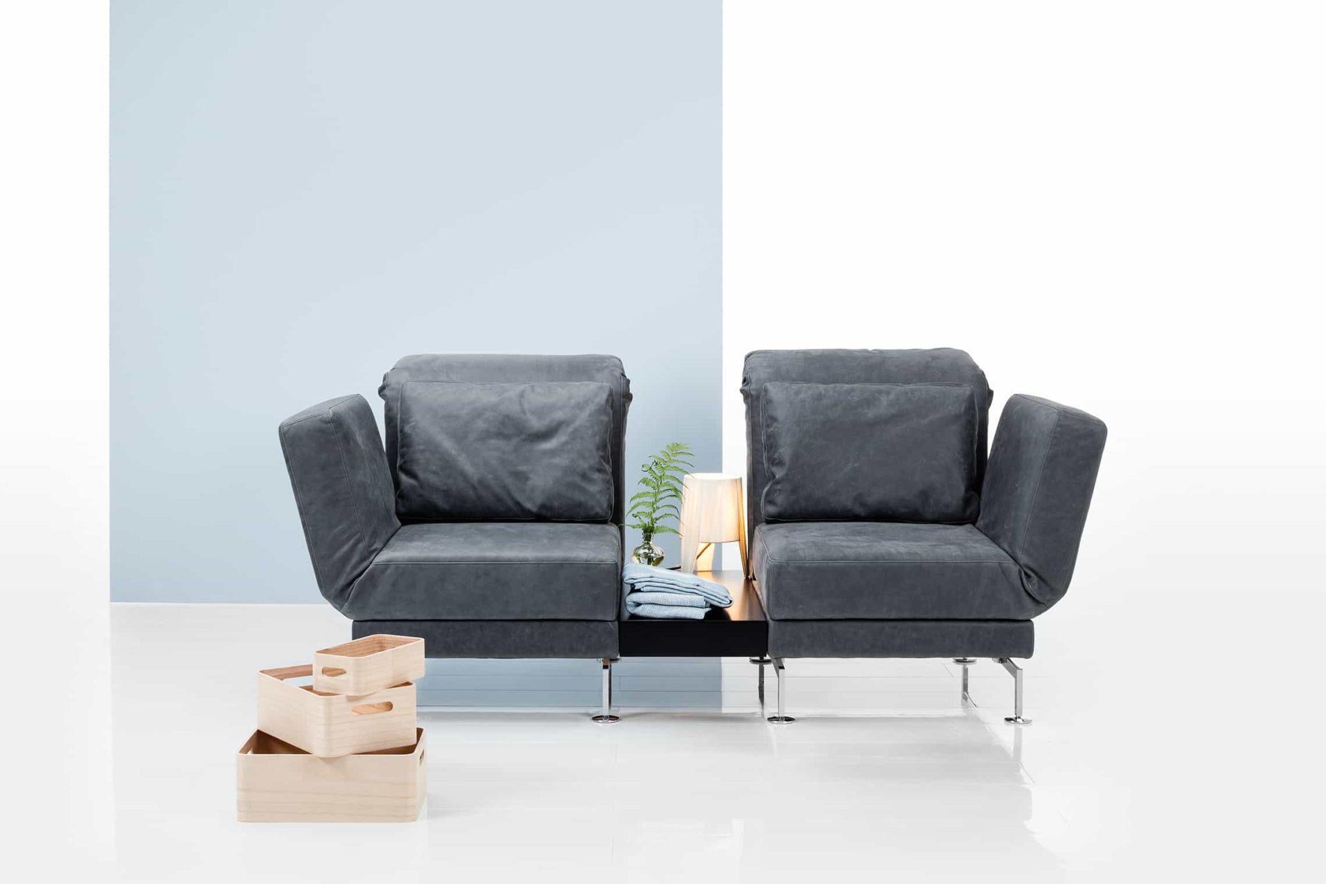 Das Sofa moule von Hersteller Brühl steckt voller Ideen! Dank raffinierter Drehelemente und flexibler Lehnen lässt sich z. B. aus einem Zweisitzer ruckzuck auf kleinstem Raum eine Schlafstatt für zwischendurch oder ein Doppelbett machen. Großzügig dimensioniert bei moule-medium oder mit kompaktem Maß bei moule-small. Separat zum Entspannen vorschwenkbare Sitze und stufenlos absenkbare Arm- und Rückenlehnen ermöglichen vielfältige Entspannungspositionen – bis hin zum bequemen Liegen. Die klappbaren Armlehnen räumen ruckzuck Platz ein für ein Nickerchen und die eben noch formelle Eckgruppe wird zur gemütlichen Lümmellandschaft, ohne dabei an Eleganz zu verlieren.